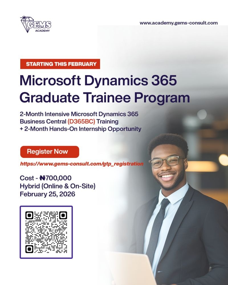 Our Microsoft Dynamics graduate trainee program is a specially designed program which is an intensive hand – on training for empowering fresh graduates that desire to be Microsoft Certified Business Management Solution Professionals and make impact on business processes for optimum productivity. This intensive hands-on training is an hybrid program that runs both online and on-premises for several lead by Microsoft Certified trainers with years of project delivery experience, also there is opportunity for internship. Register to make use of this rare opportunity day and truly dive into the world of Enterprise Resource Planning today.